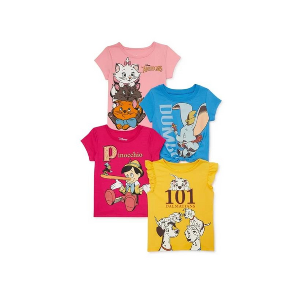 4-Pack Toddler Girls' Graphic T-Shirts: Disney Classics, Harry Potter or Peanuts