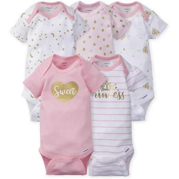 5-Pack Gerber Baby-Girls Short Sleeve Variety Onesies Bodysuits