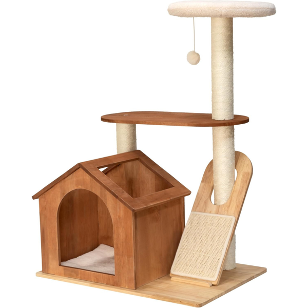 Kitty City Two-Level Wooden Cat Tower with Hideaway