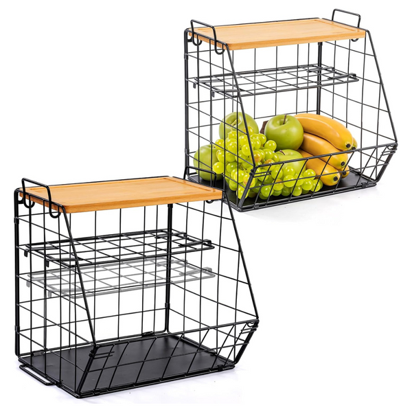 2-Pack 3 Tier Fruit Basket For Kitchen With Cutting Board