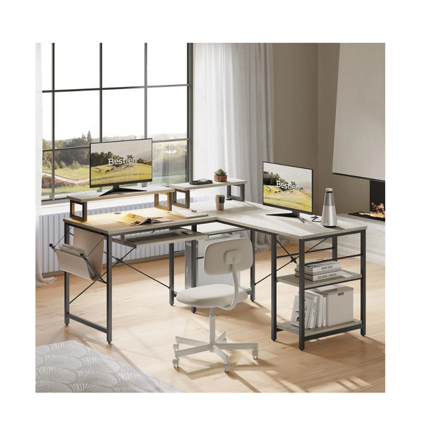 Bestier Escritorio de oficina en casa con luces LED para juegos en forma de L de 95,2"