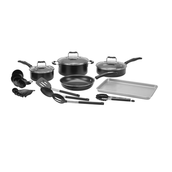 Mejore su experiencia culinaria con el juego completo de utensilios de cocina antiadherentes Chef Cuisinart P55-22BK, que presenta una conducción de calor superior, mangos ergonómicos y herramientas de cocina incluidas para preparar comidas sin esfuerzo.
