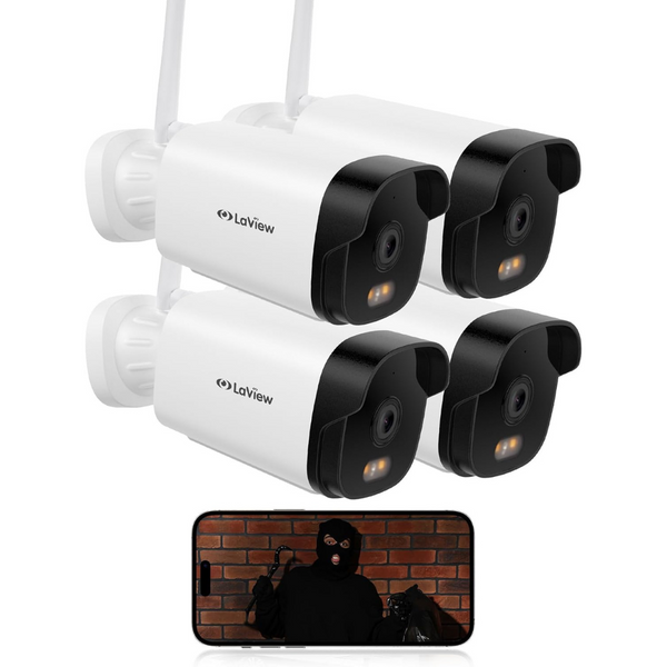 4-Pack LaView 3K 5MP HD 2.4G WiFi Outdoor Security Cameras