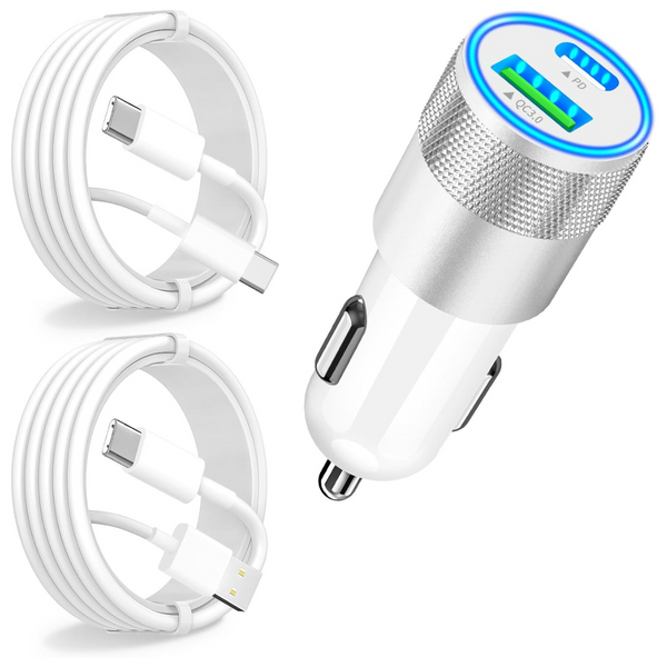 66W MFi Certified USB-C Car Charger with 2-Pack USB-C Cable