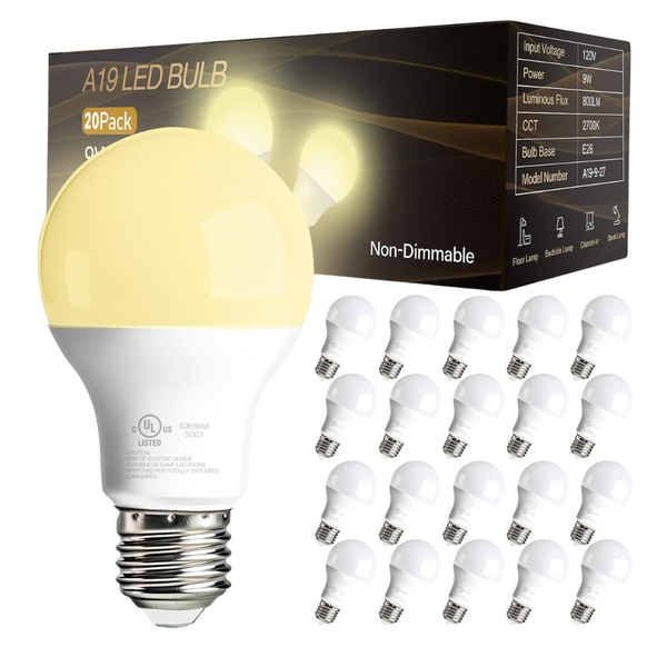 20-Pack dalattin A19 E26 60 Watt LED Light Bulbs