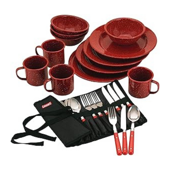 Juego de vajilla esmaltada Coleman de 24 piezas (rojo)