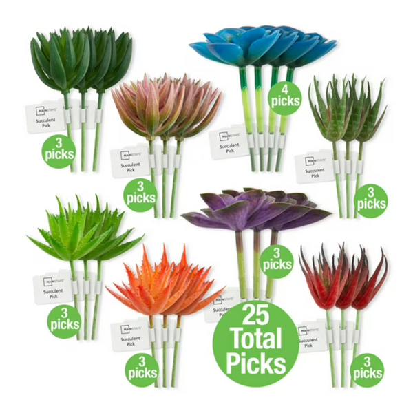 25-Pack Mainstays 4" Artificial Multicolor Mini Succulent Picks