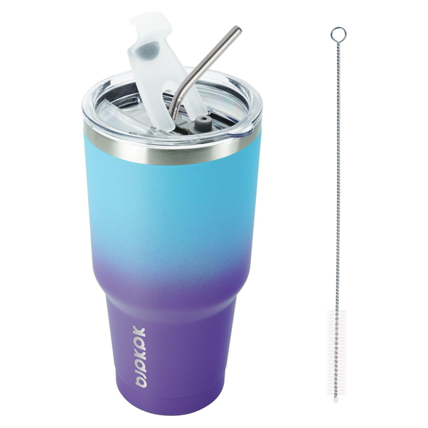 30 Oz Color Block Stainless Steel Tumbler With Lid & Straw
