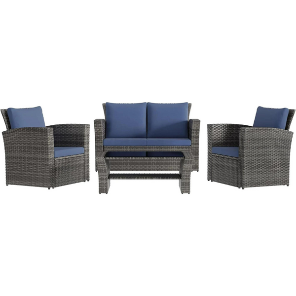 4-Piece Superjoe Outdoor Patio Furniture Rattan Sectional Conversation Set