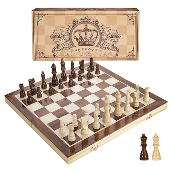 Amerous 15" Magnetic Wooden Handmade Portable Travel Chess Set