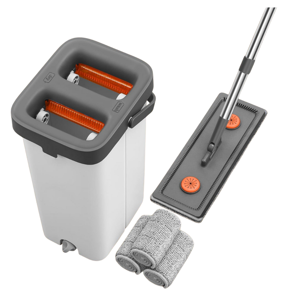 Mop & Bucket With Wringer Set, 61" Long Handle & 3 Microfiber Pads