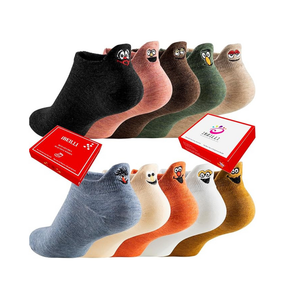 10-Pairs Women's Cotton Kawaii Embroidered Low Cut Ankle Socks