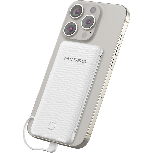 10000mAh Slim USB-C Portable Power Bank with Built-in Cables (White)
