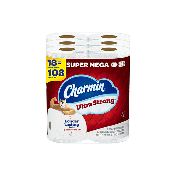 18 Super Mega (108 Regular) Rolls Of Charmin Ultra Strong Toilet Paper