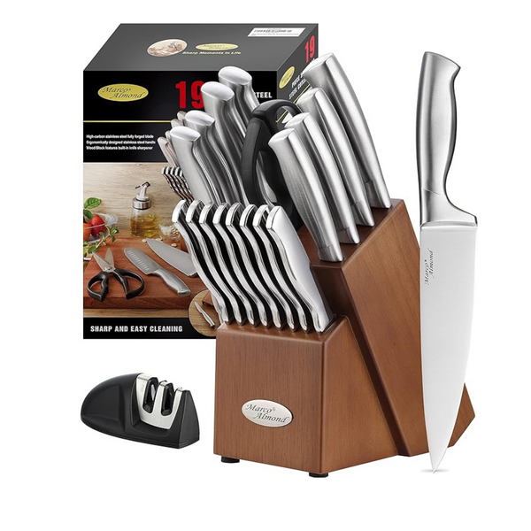 19-Piece Marco Almond Hollow Handle Kitchen Knife Block Sets