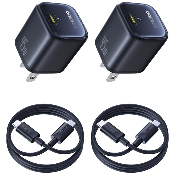 2-Pack 45W Baseus USB-C GaN6 Fast Wall Charger w/USB-C Cables