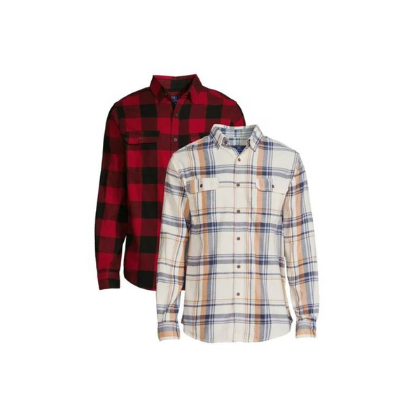 2-Pack George Men's Long Sleeve Flannel Shirts
