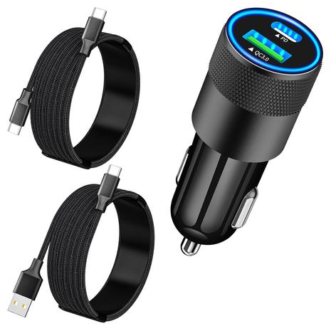 2-Port 66W Fast Charging USB-C Car Charger w/ 2 Braided Cables