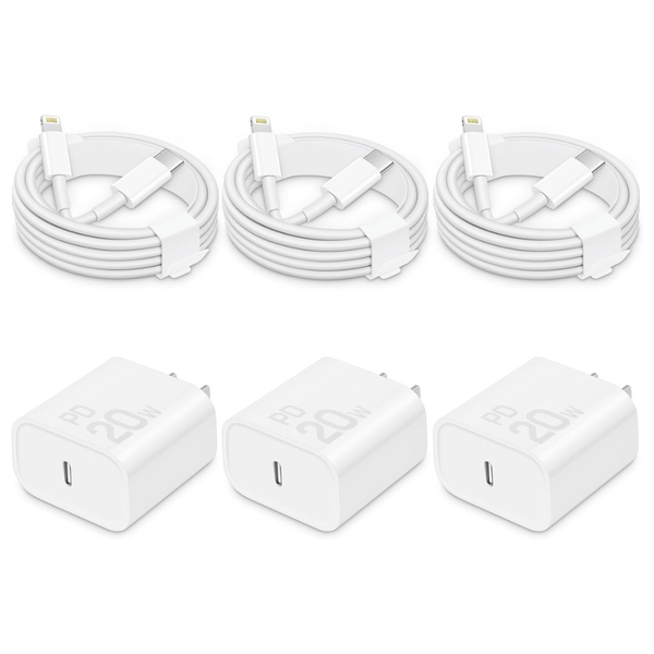 3-Pack 20W USB-C Wall Charger Cube With 6ft Cables
