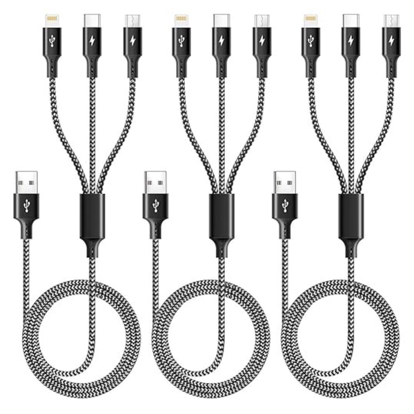 3-Pack 3-in-1 Braided Multiple Charging Cable