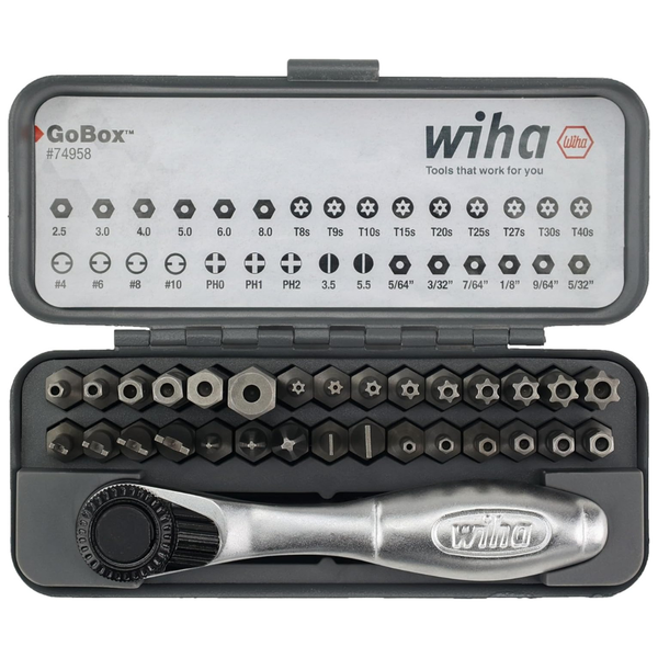 32-Piece Wiha 74958 GoBox Security Bit Set with Mini Ratchet