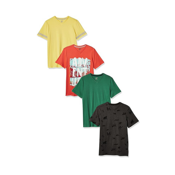 4-Pack Amazon Essentials Boy's Short-Sleeve V-Neck T-Shirt