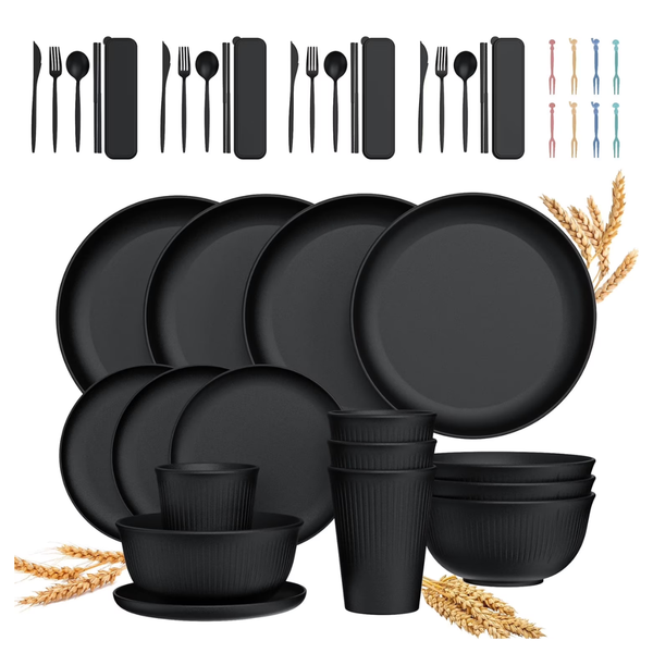 48-Piece GPED Wheat Straw Dinnerware And Cutlery Set