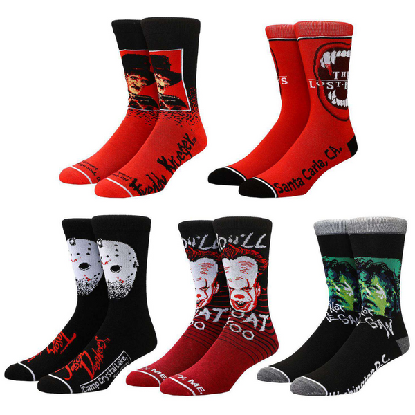 5-Pack Bioworld Horror Characters Men's Crew Socks