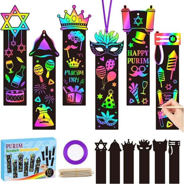 60-Piece Purim Scratch Art Bookmarks