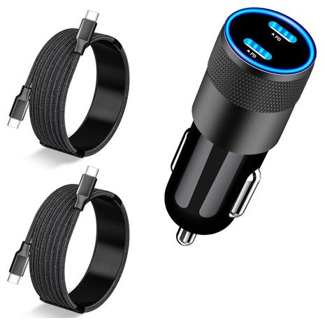 72W Dual PD Fast Charging Car Charger + 2 USB-C Cables