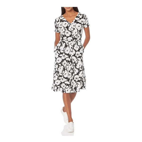 Amazon Essentials Women's Short-Sleeve Midi Button Front Tie Dress