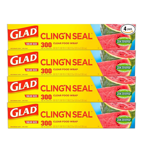 Glad Cling N Seal Plastic Food Wrap (4 Packs, 300 Square Foot Rolls)