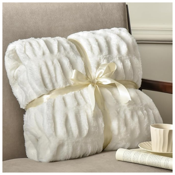 PHF Twin Size Fluffy Ruched Faux Fur Throw Blanket