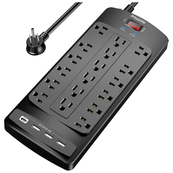 POWSAV Surge Protector With 18 Outlets And 4 USB Ports (NBW-903)