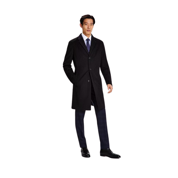 Tommy Hilfiger Men's Addison Wool-Blend Trim Fit Overcoat (Black Pinstripe)