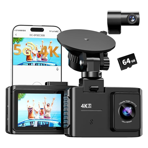 Wanlipo 4K Front & 1080p Rear Dual Dash Cam with 64GB Card