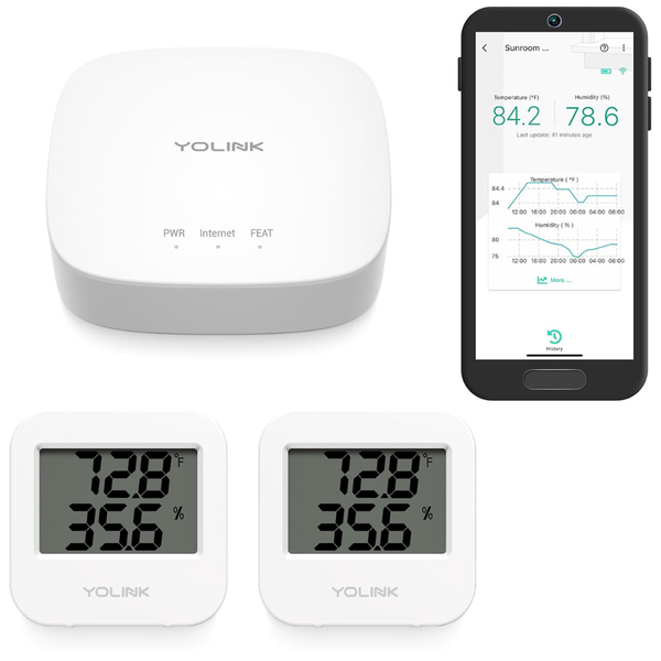 YoLink Smart Temperature & Humidity Monitor W/ 2 Sensors + Hub
